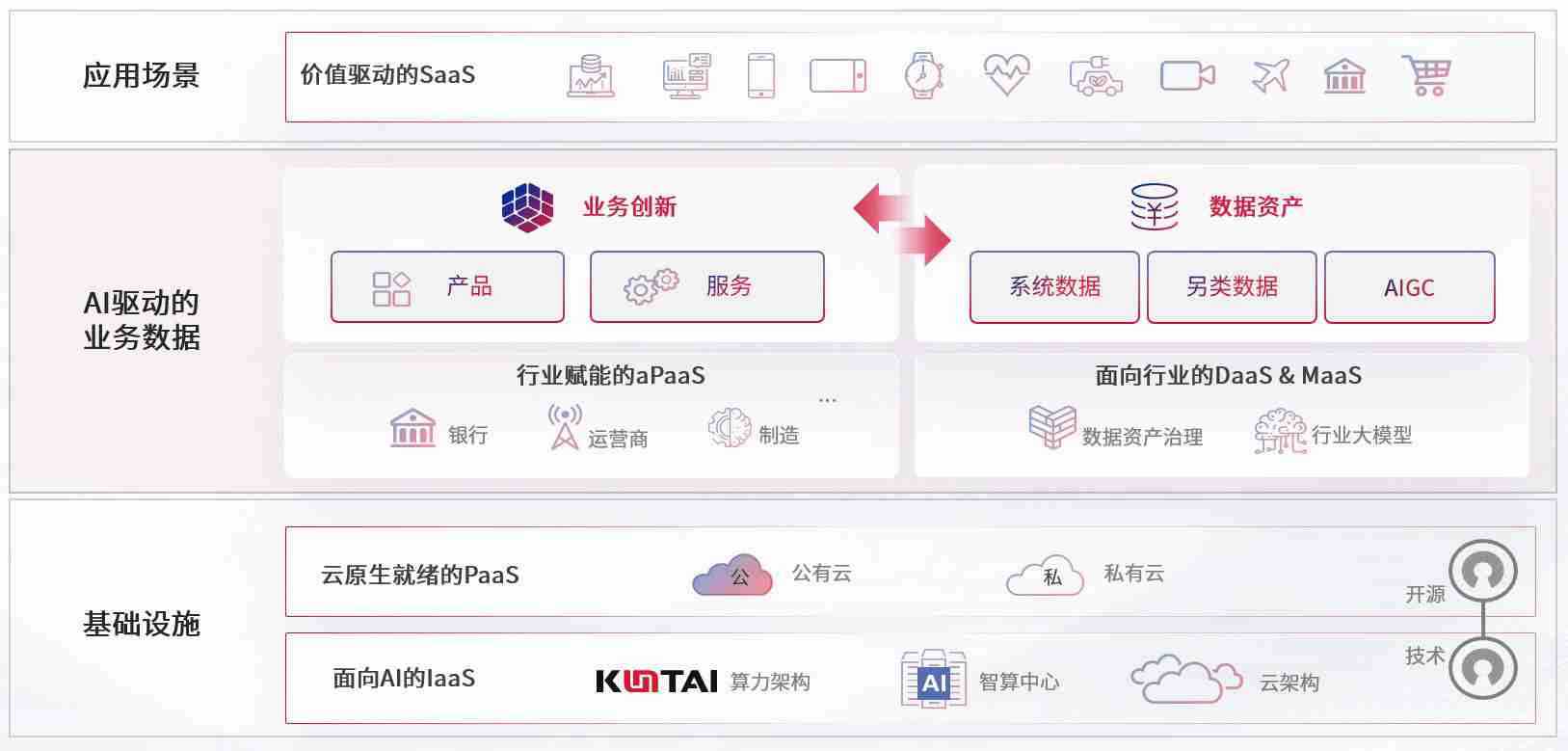 数字时代,,围绕企业数字化转型的关键要素,,,,z6尊龙数码开创性的提出数云融合战略和技术体系框架,,,着力在云原生、、、数字原生、、AI原生和信创产业上架构产品和服务能力,,,为处在不同数字化转型阶段的快消零售、、汽车、、、金融、、、医疗、、、、政企、、、教育、、、、运营商等行业客户提供泛在的敏捷IT能力和融合的数据驱动能力,,构建跨界融合创新的数字业务场景和新业务模式,,,,助力企业级客户建立面向未来的核心能力和竞争优势,,,全面推动社会的数字化、、智能化转型升级。。。。
